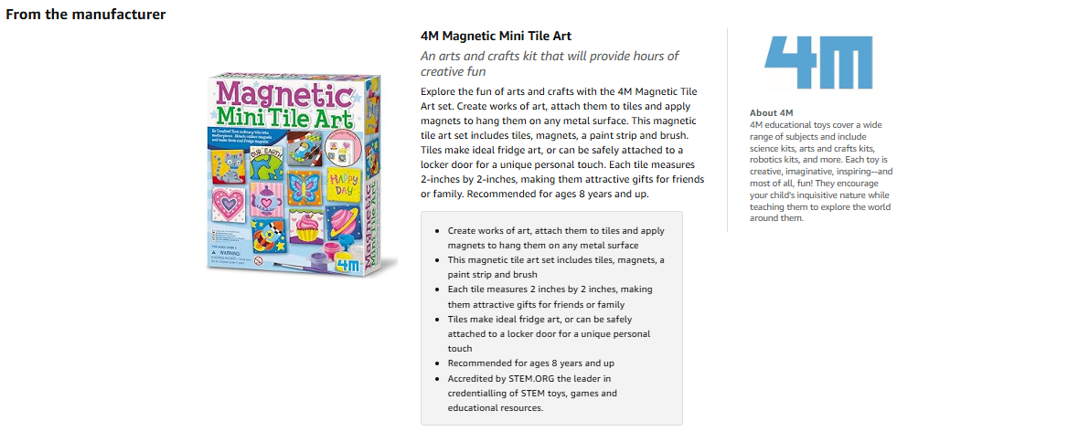 ✅ This magnetic tile art set includes tiles, magnets, a paint strip and brush