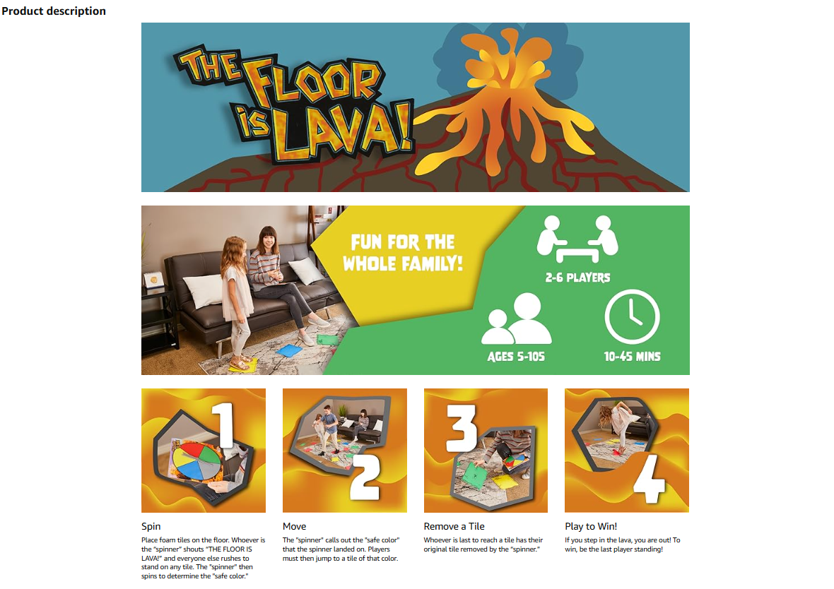 ✅ACTIVE FUN: Turn every floor into an exciting “lava jumping” adventure with The Floor is Lava! Get your child up off the couch or away from video games with this fun interactive game!