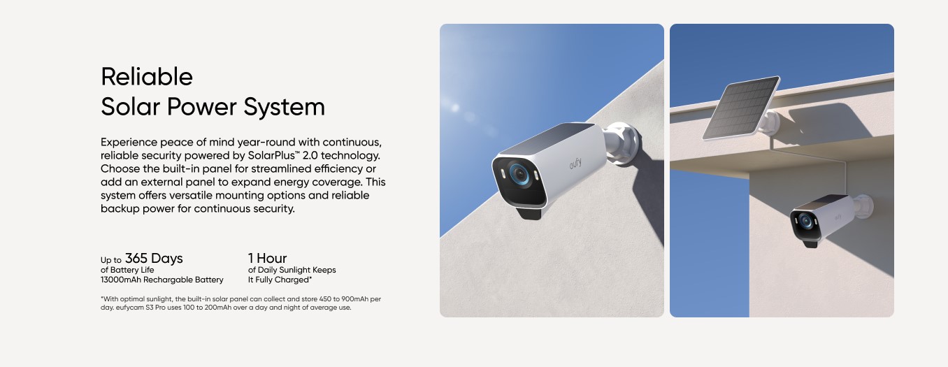 ✅Reliable Solar Power System: Experience peace of mind year-round with continuous, reliable security powered by SolarPlus 2.0 technology. Choose the built-in panel for streamlined efficiency or add an external panel to expand energy coverage. This system offers versatile mounting options and reliable backup power for continuous security. (includes backup solar panel).