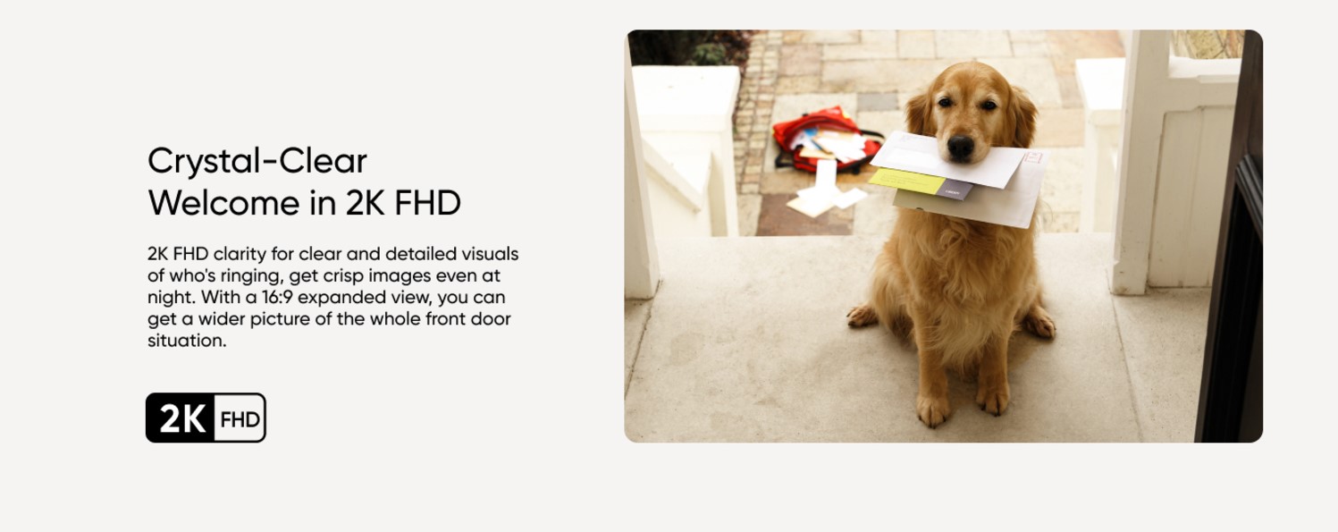 * Crystal-Clear Welcome in 2K FHD: Experience 2K FHD clarity for detailed and vivid visuals, ensuring you can see exactly who is at your door, even at night. The 16:9 expanded view provides a wider picture of your entire front door area, offering enhanced security and peace of mind.