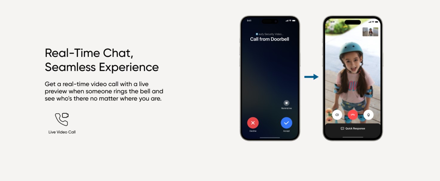 * Real-Time Chat, Seamless Experience: Stay connected with your visitors in real time. When someone rings the doorbell, you'll receive a pop-up video call on your phone. If you're not at home, you can set up quick responses and ask visitors to leave voice memos, ensuring you never miss an important message.