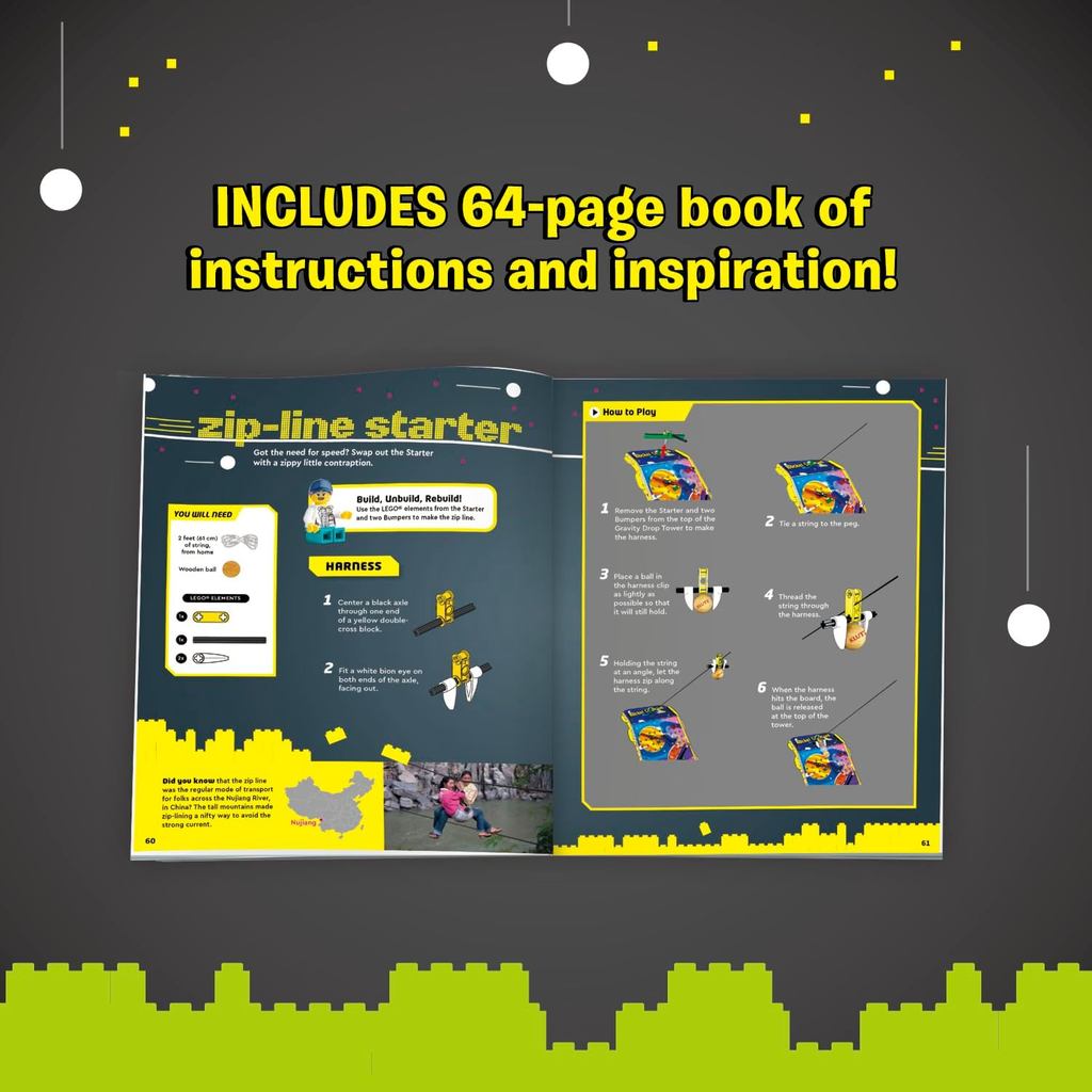 * Includes 20+ different LEGO contraptions that interact on the gravity drop tower, plus 5 extra projects: 2 mini tower builds, a gravity labyrinth, and a grabber.