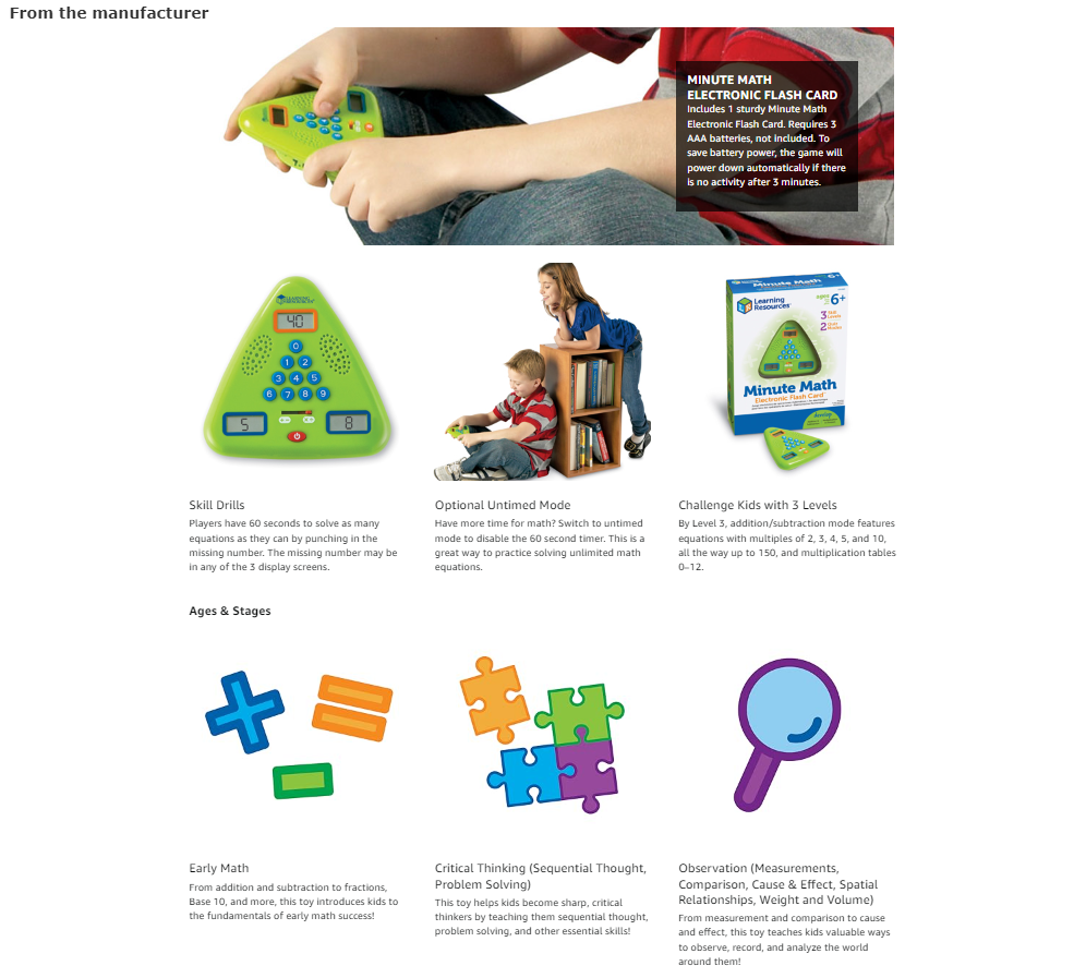 Learning Resources Minute Math Electronic Flash Card, Homeschool, Early Algebra Skills, 3 Difficulty Levels