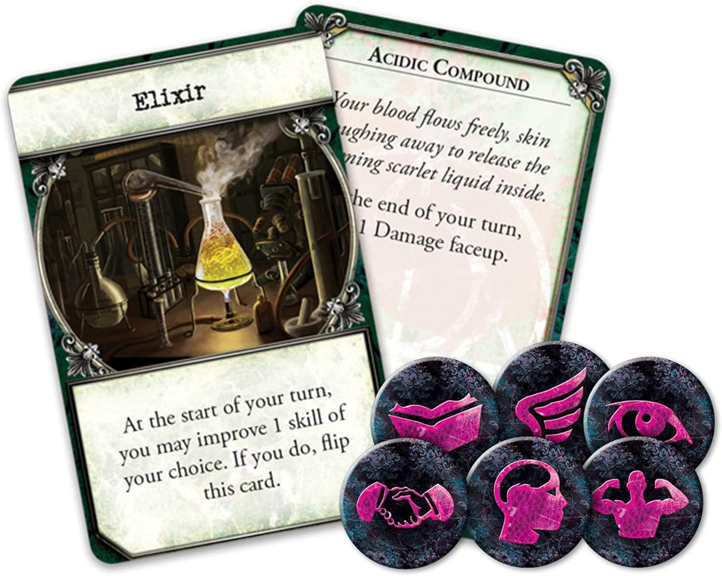 * ELIXIRS AND IMPROVEMENT: Discover new gameplay elements with Elixirs and Improvement Tokens, enhancing your strategies and offering fresh challenges.