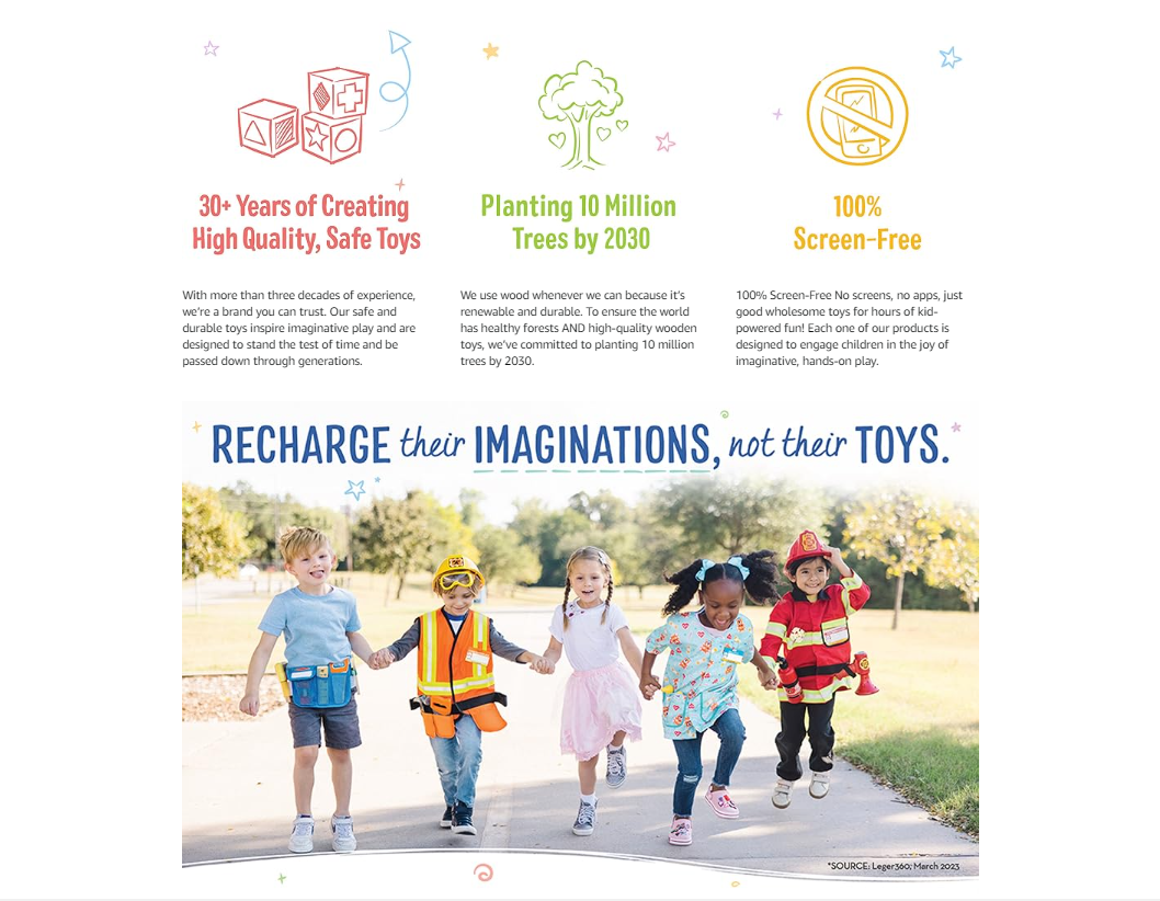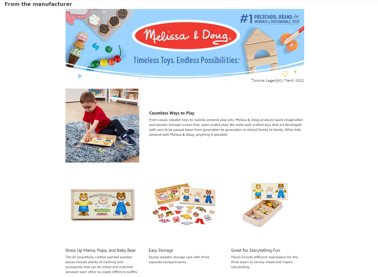 * “THE GOLD STANDARD IN CHILDHOOD PLAY”: For more than 30 years, Melissa & Doug has created beautifully designed imagination- and creativity-sparking products that NBC News called “the gold standard in early childhood play.”
