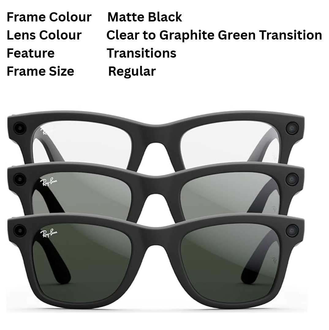 RayBan | Meta Wayfarer Smart Glasses - Shiny Black / Matte Black / Clear to Graphite Green Transition options (Meta Ray-Ban)