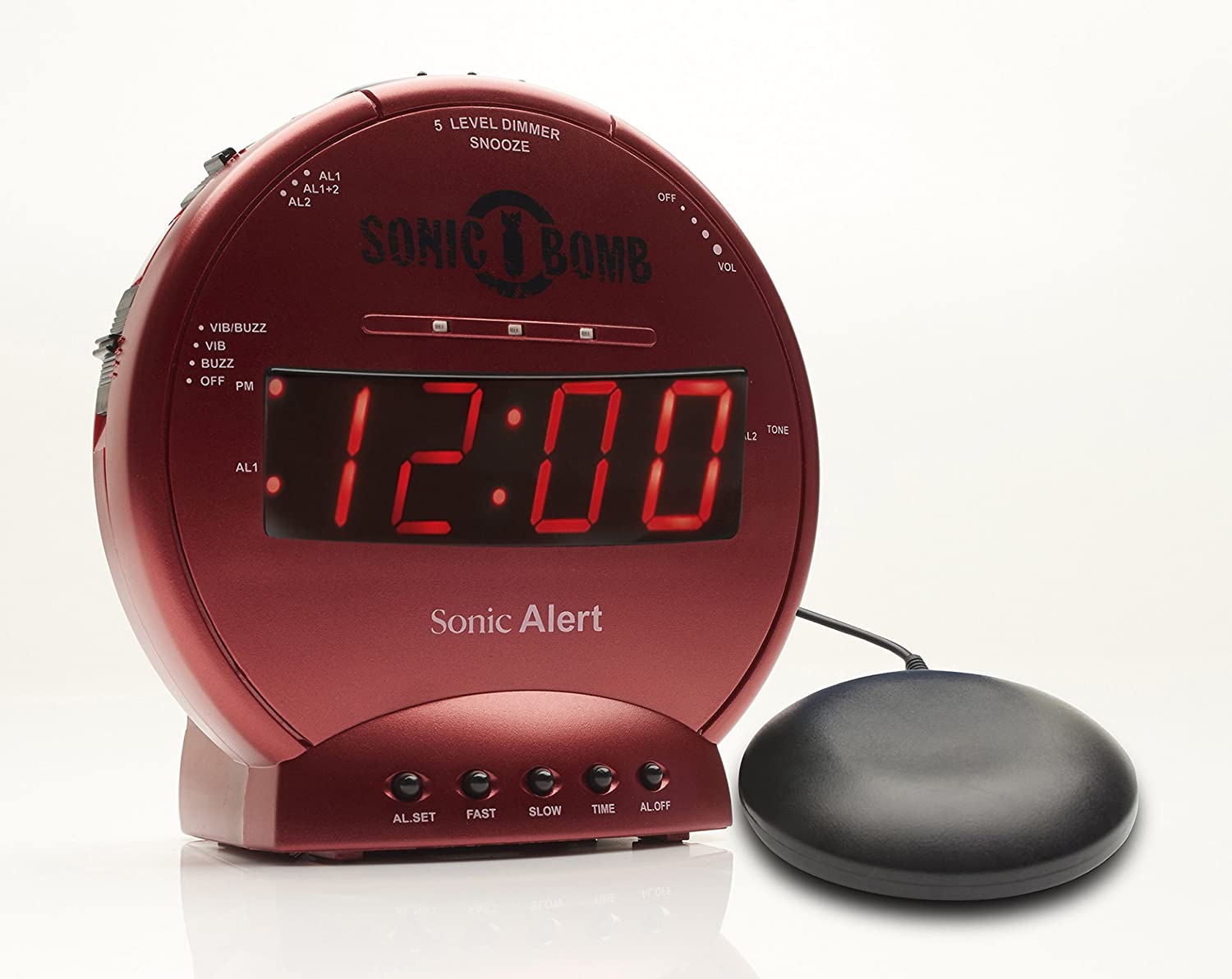 - THE ORIGINAL VIBRATING ALARM CLOCK- Since 1980 the Sonic Alert Sonic Bomb Alarm clock has been the strongest alarm shaker on the market for heavy sleepers and deaf individuals. The super loud alarm clock of 113 dB and flashing lights along with battery backup provide assurance that you will wake on-time.