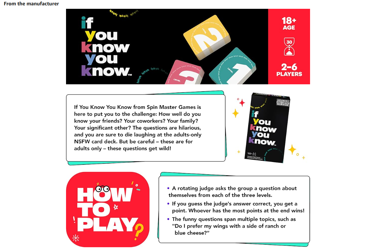 * BASED ON THE VIRAL TREND: Whether you’ve seen “IYKYK” on TikTok or IG, this adult board game is a fun game to play as a newlywed game, best friend game or couples game