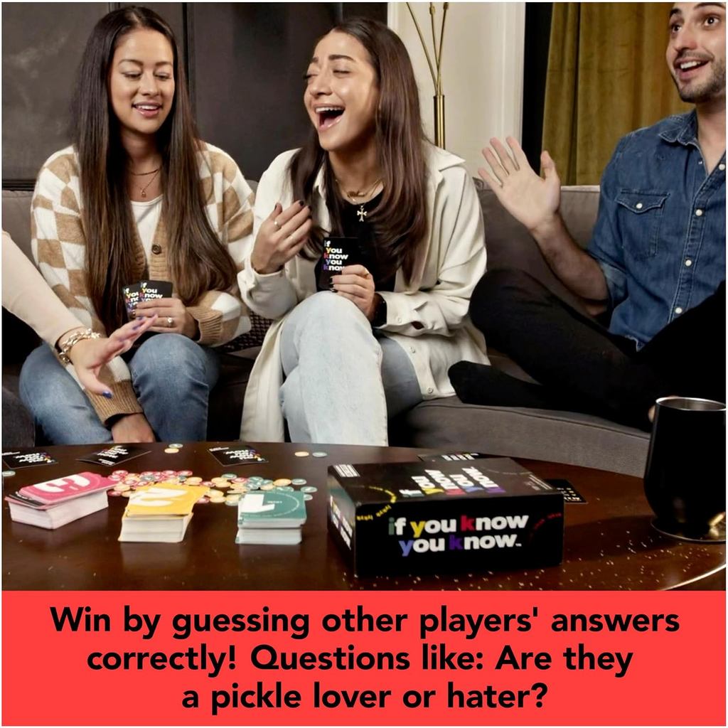 * WHO KNOWS EACH OTHER THE BEST? Is your friend a pickle lover or hater? Does it take them 0, 1, or 2+ alarms to wake up? In this exciting question game for 2-6 players, prove you know your friends & family the best by guessing their answers correctly