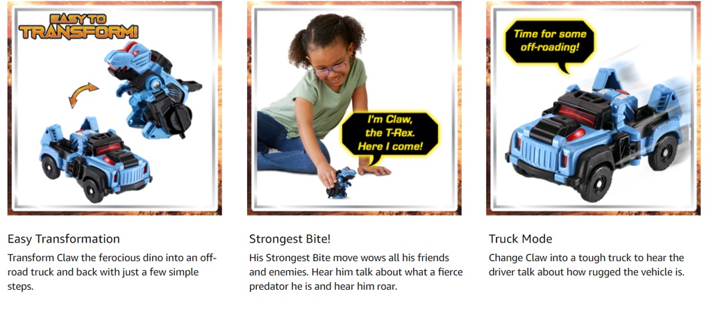 --Change the dino into a vehicle to see it leave a blaze of lightning in its trail