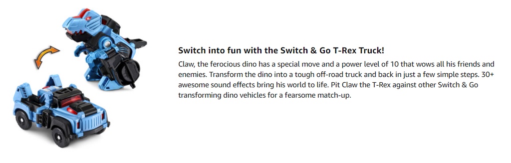 --Pit this Triceratops Race Car against other dino-vehicles in a Switch and Go world; other Switch and Go products sold separately